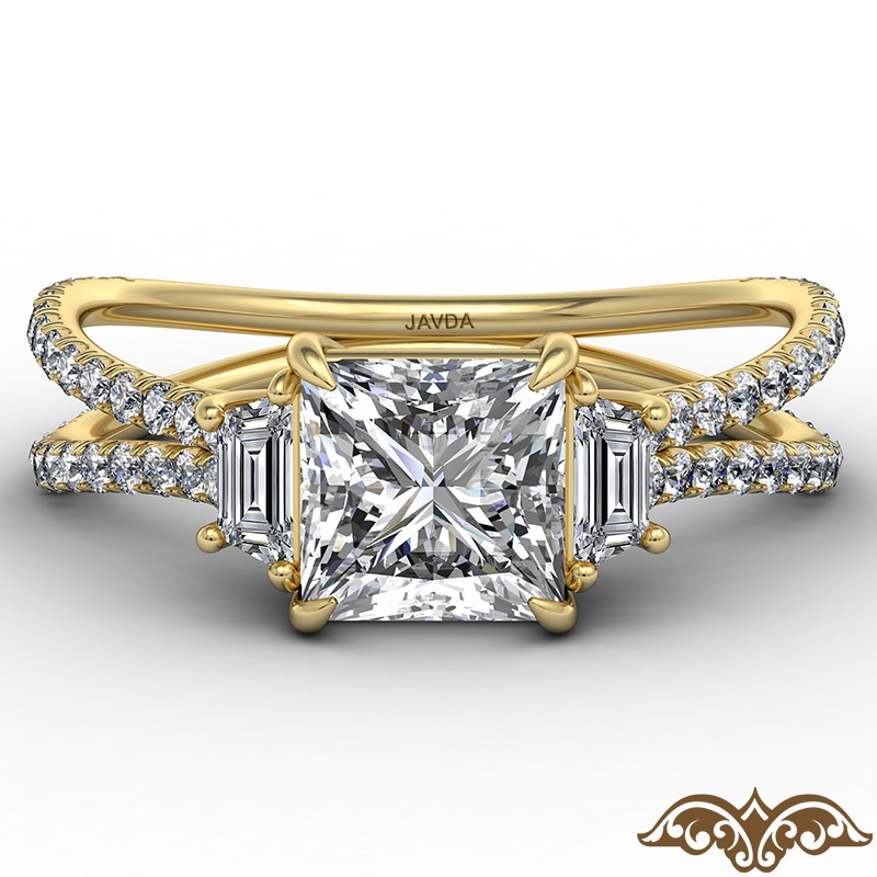 Three Stone Split Shank Round Semi Mount Diamond Engagement Ring 18k Yellow Gold 0.8Ct.