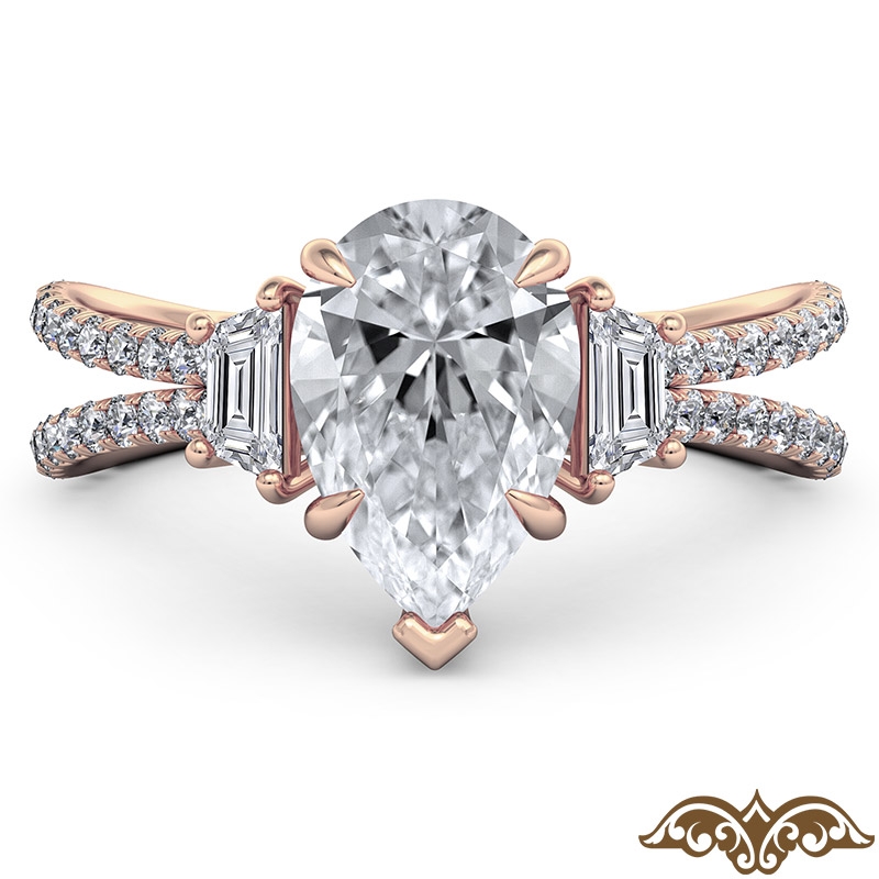 style Engagement Ring, center is Pear shape Diamond Report by IGI, E Color & VS1 clarity, Made in 14k Rose Gold (2.02 ct. tw.)