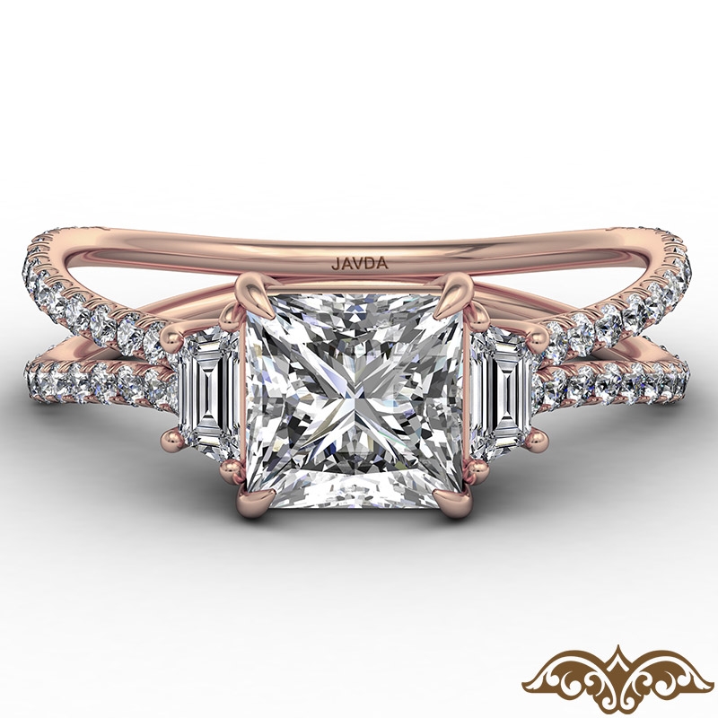 style Engagement Ring, center is Princess shape Diamond Report by GIA, G Color & VS2 clarity, Made in 18k Rose Gold (1.6 ct. tw.)