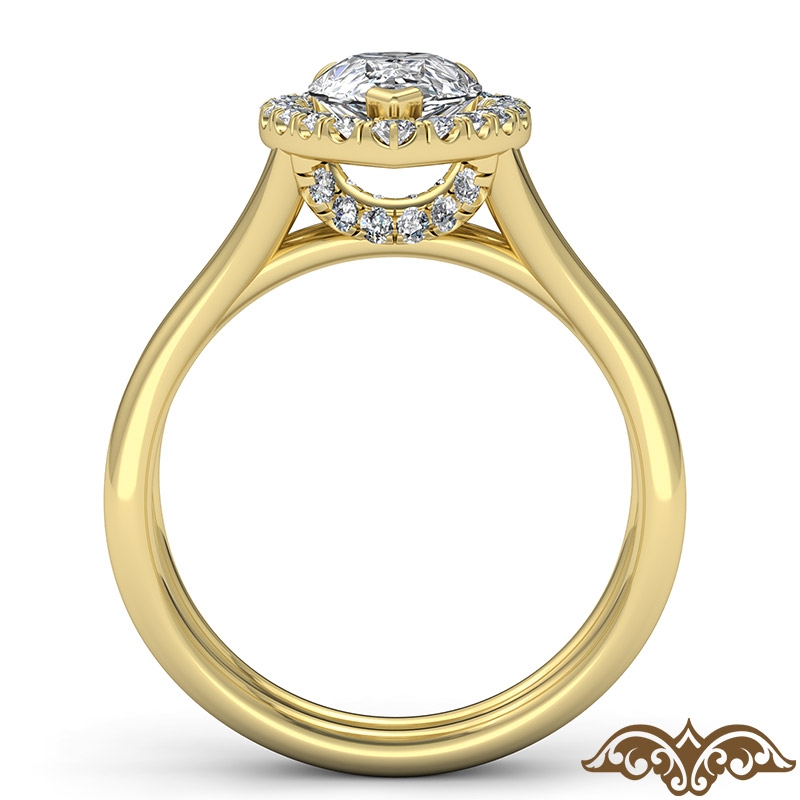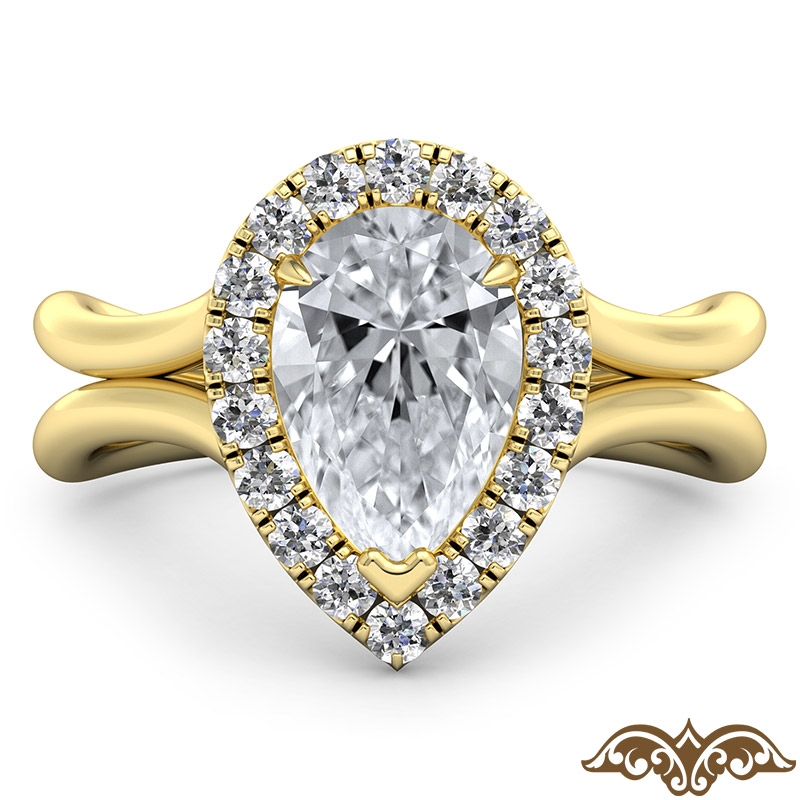 French U Cut Pave Crown halo style Engagement Ring, center is Pear shape Diamond Report by IGI, E Color & VS1 clarity, Made in 14k Yellow Gold (1.62 ct. tw.)