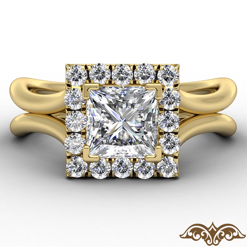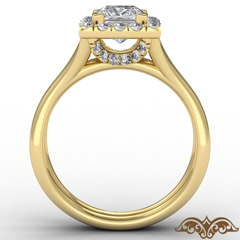 French U Cut Pave Crown halo style Engagement Ring, center is Princess shape Diamond Report by IGI, D Color & VS1 clarity, Made in 14k Yellow Gold (1.42 ct. tw.)