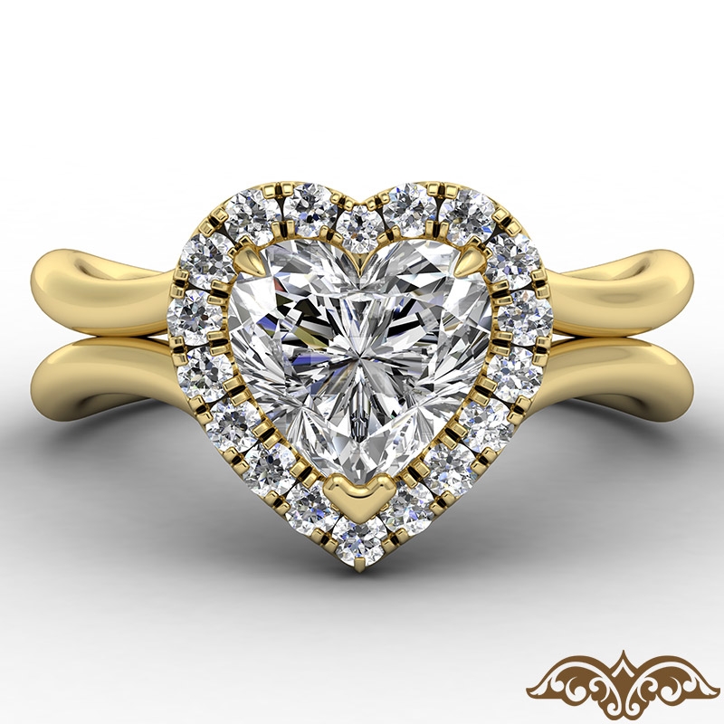 French U Cut Pave Crown halo style Engagement Ring, center is Heart shape Diamond Report by GIA, J Color & SI2 clarity, Made in 18k Yellow Gold (1.24 ct. tw.)