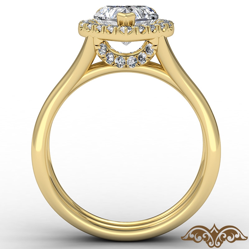 Halo Split Shank Cushion Semi Mount Diamond Engagement Ring 18k Yellow Gold 0.4Ct.
