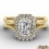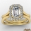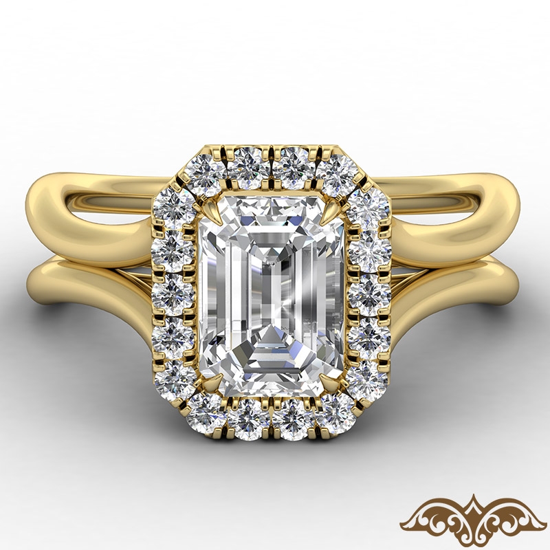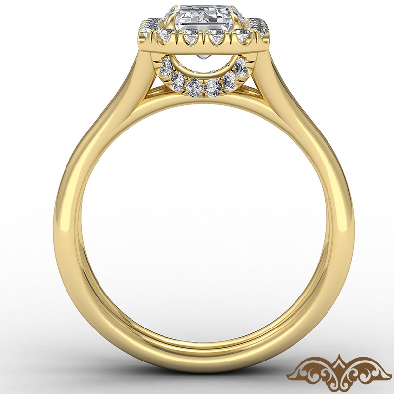 French U Cut Pave Crown halo style Engagement Ring, center is Emerald shape Diamond Report by GIA, D Color & VS1 clarity, Made in 18k Yellow Gold (1.18 ct. tw.)