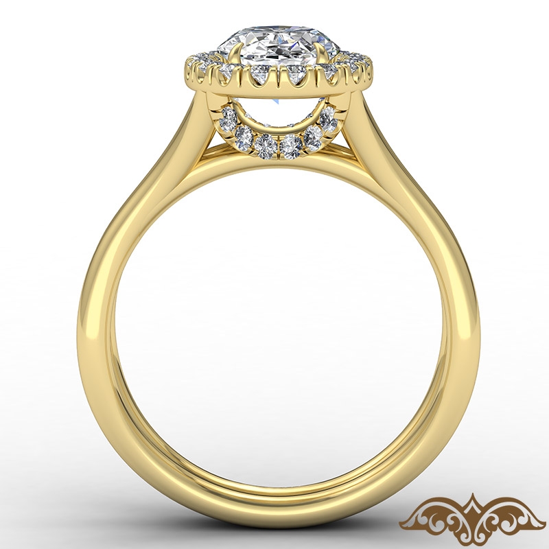 Halo Split Shank Cushion Semi Mount Diamond Engagement Ring 18k Yellow Gold 0.4Ct.