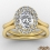 French U Cut Pave Crown halo style Engagement Ring, center is Oval shape Diamond Report by IGI, F Color & VS1 clarity, Made in 18k Yellow Gold (1.4 ct. tw.)
