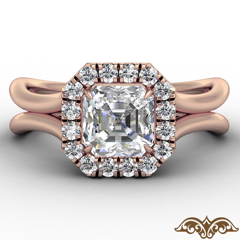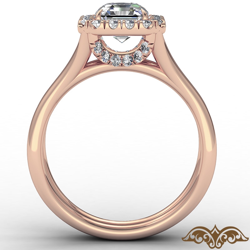 French U Cut Pave Crown halo style Engagement Ring, center is Asscher shape Diamond Report by IGI, D Color & VS1 clarity, Made in 14k Rose Gold (1.48 ct. tw.)