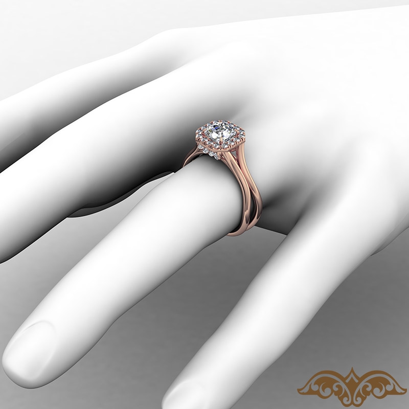 Halo Split Shank Cushion Semi Mount Diamond Engagement Ring 14k Rose Gold 0.4Ct.