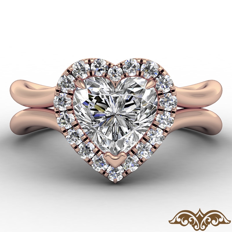 French U Cut Pave Crown halo style Engagement Ring, center is Heart shape Diamond Report by GIA, J Color & SI2 clarity, Made in 18k Rose Gold (1.24 ct. tw.)