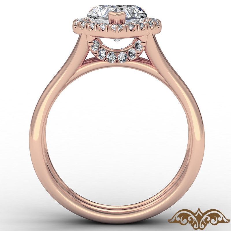 Halo Split Shank Cushion Semi Mount Diamond Engagement Ring 18k Rose Gold 0.4Ct.