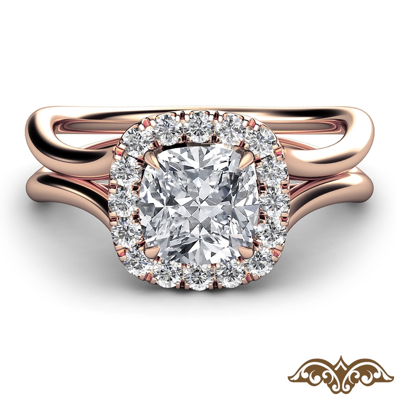 Halo Split Shank Cushion Semi Mount Diamond Engagement Ring 18k Rose Gold 0.4Ct.