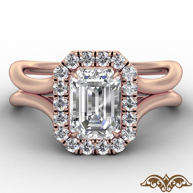 French U Cut Pave Crown halo style Engagement Ring, center is Emerald shape Diamond Report by GIA, D Color & VS1 clarity, Made in 18k Rose Gold (1.18 ct. tw.)