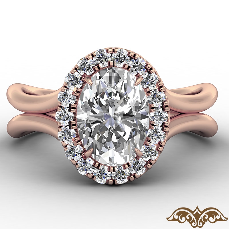 French U Cut Pave Crown halo style Engagement Ring, center is Oval shape Diamond Report by IGI, F Color & VS1 clarity, Made in 18k Rose Gold (1.4 ct. tw.)