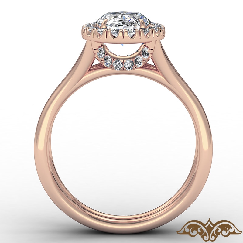 Halo Split Shank Cushion Semi Mount Diamond Engagement Ring 18k Rose Gold 0.4Ct.