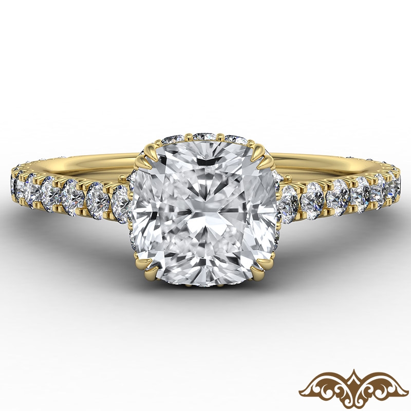 style Engagement Ring, center is Cushion shape Diamond Report by IGI, D Color & VS1 clarity, Made in 14k Yellow Gold (1.91 ct. tw.)