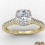 Round Semi Mount French U Pave 14k Yellow Gold Accent Diamond Engagement Ring 0.9Ct.