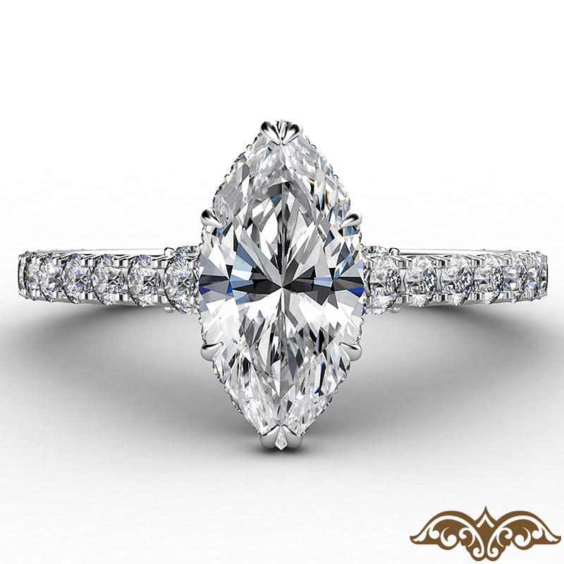 style Engagement Ring, center is Marquise shape Diamond Report by IGI, E Color & VS1 clarity, Made in Platinum 950 (2.32 ct. tw.)