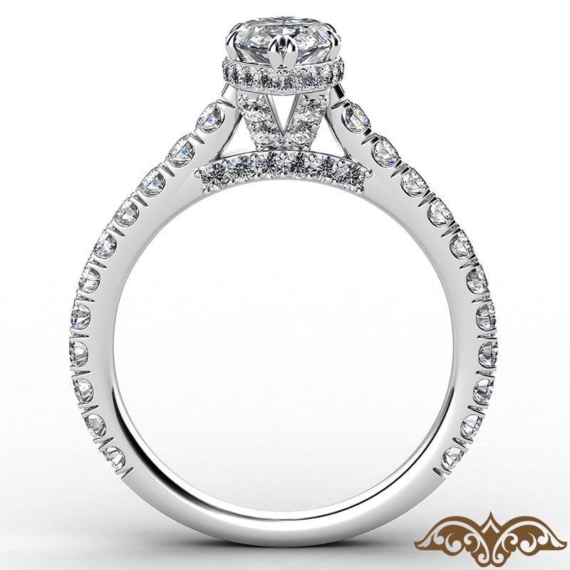 Round Semi Mount French U Pave Platinum 950 Accent Diamond Engagement Ring 0.9Ct.