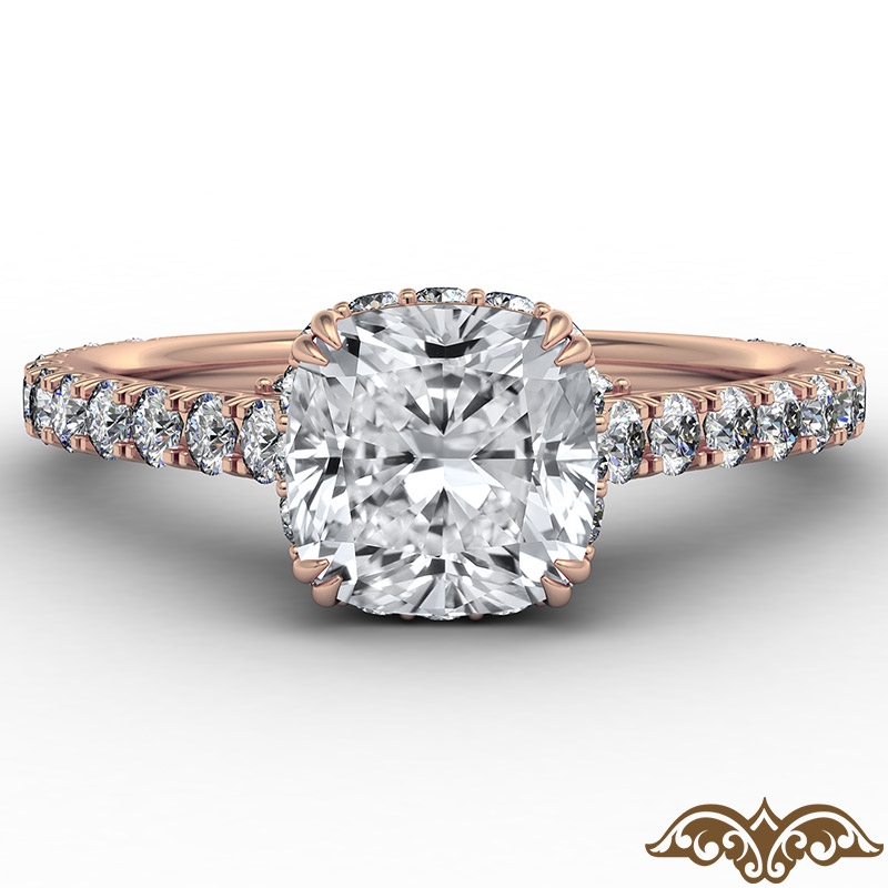 style Engagement Ring, center is Cushion shape Diamond Report by IGI, D Color & VS1 clarity, Made in 14k Rose Gold (1.91 ct. tw.)