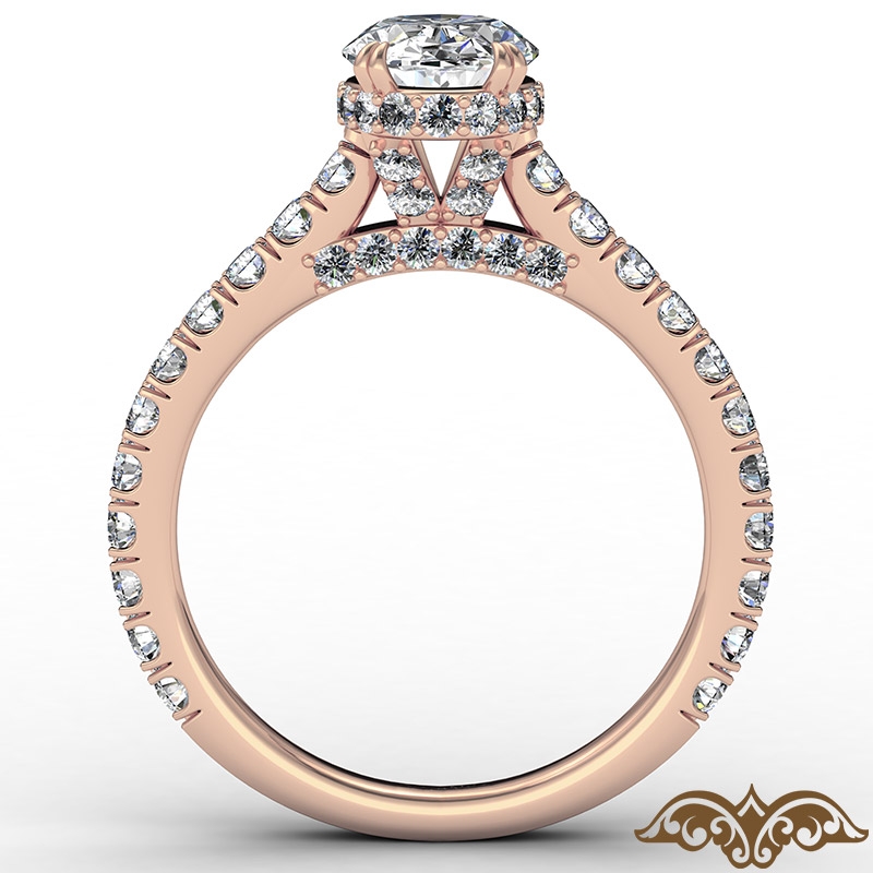 Round Semi Mount French U Pave 18k Rose Gold Accent Diamond Engagement Ring 0.9Ct.
