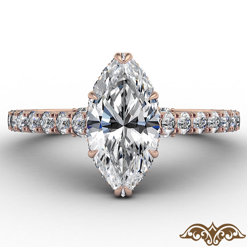 style Engagement Ring, center is Marquise shape Diamond Report by IGI, E Color & VS1 clarity, Made in 18k Rose Gold (2.32 ct. tw.)