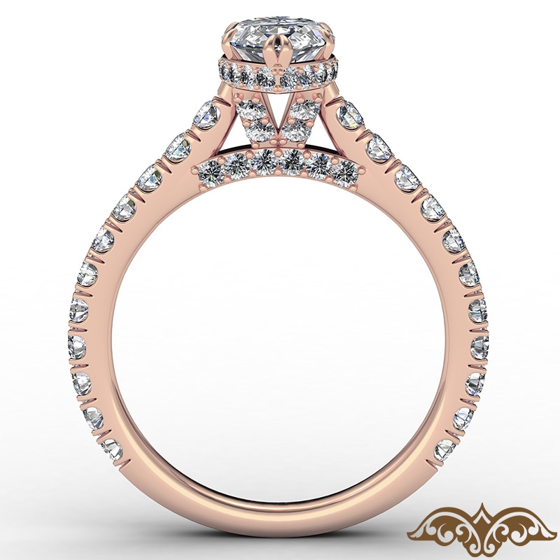 Round Semi Mount French U Pave 18k Rose Gold Accent Diamond Engagement Ring 0.9Ct.
