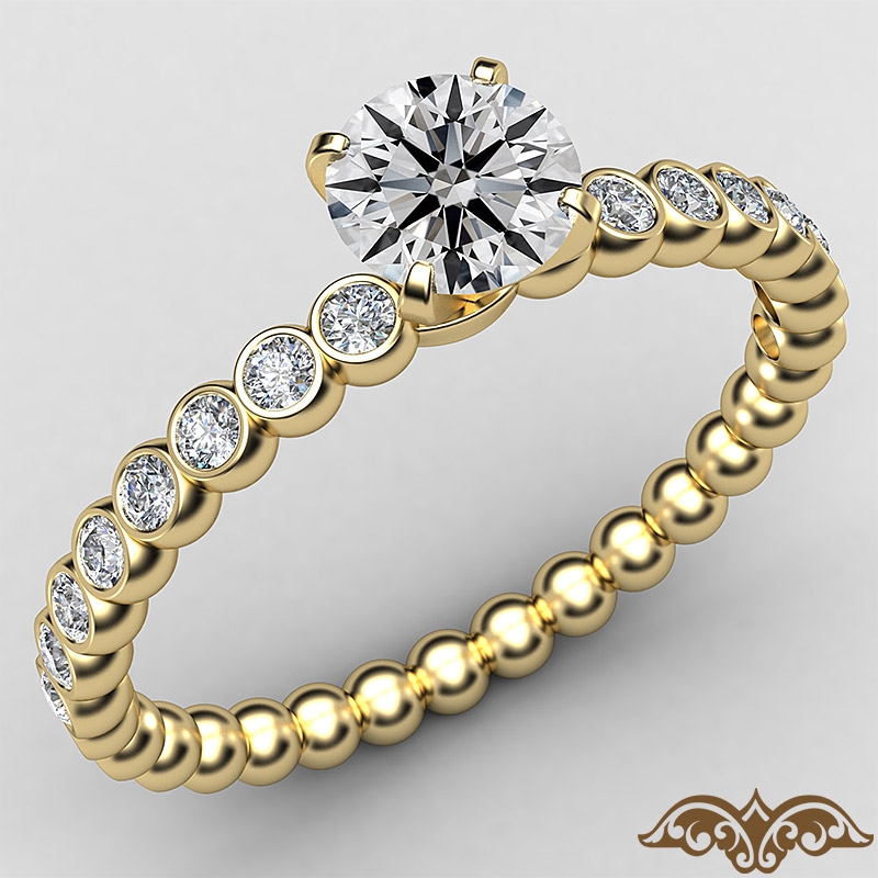 Bezel Bubble 4 Prong Peg Head style Engagement Ring, center is Round shape Diamond Report by IGI, D Color & VS1 clarity, Made in 18k Yellow Gold (1.19 ct. tw.)