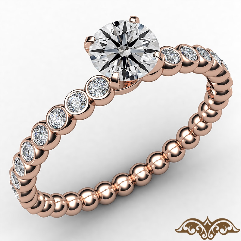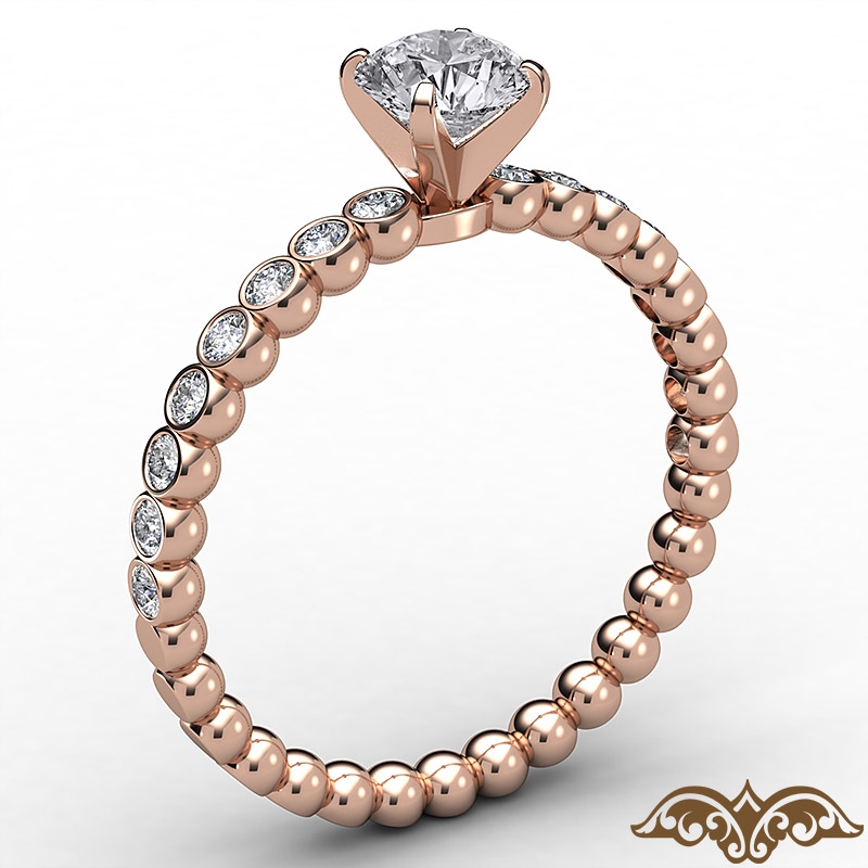 Bezel Bubble 4 Prong Peg Head style Engagement Ring, center is Round shape Diamond Report by IGI, D Color & VS1 clarity, Made in 18k Rose Gold (1.19 ct. tw.)