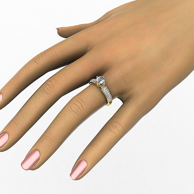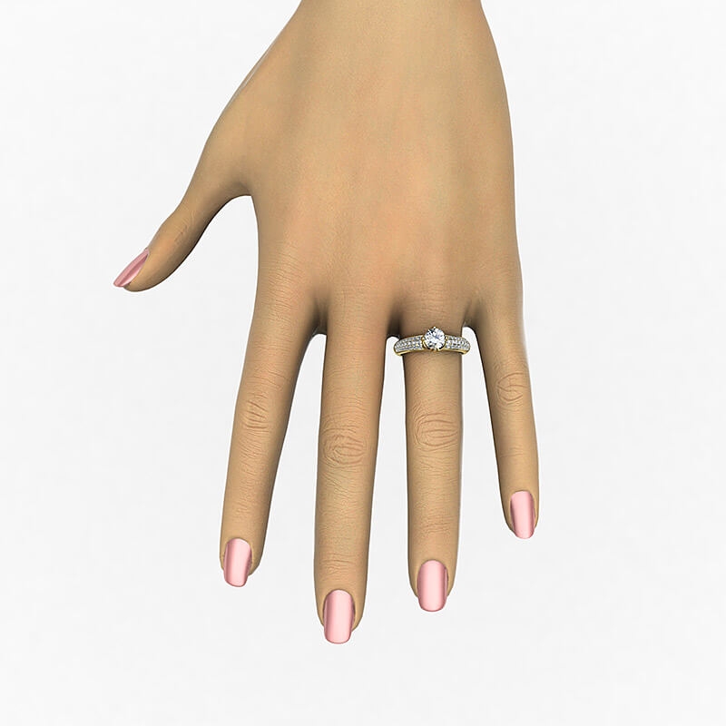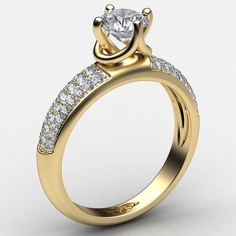 Three Row Micropave Set Shank style Engagement Ring, center is Round shape Diamond Report by IGI, D Color & VS1 clarity, Made in 14k Yellow Gold (1.34 ct. tw.)