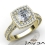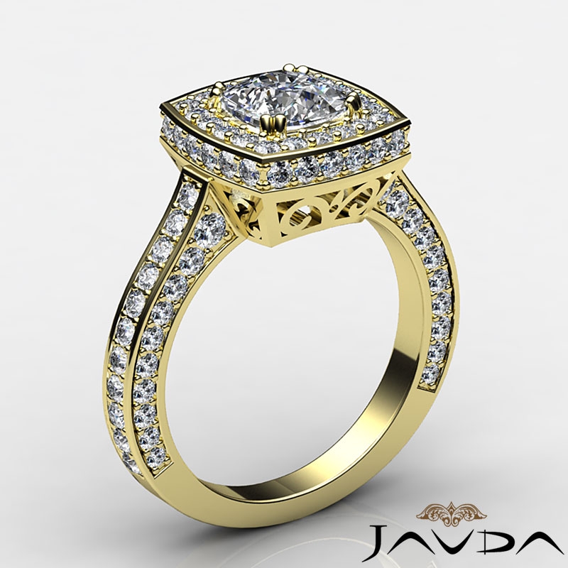 1.6Ct Diamond Engagement Ring Halo Setting 18k Yellow Gold Cushion Semi Mount.