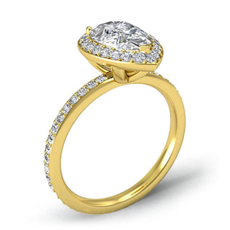 style Engagement Ring, center is Pear shape Diamond Report by IGI, E Color & VS1 clarity, Made in 14k Yellow Gold (1.82 ct. tw.)