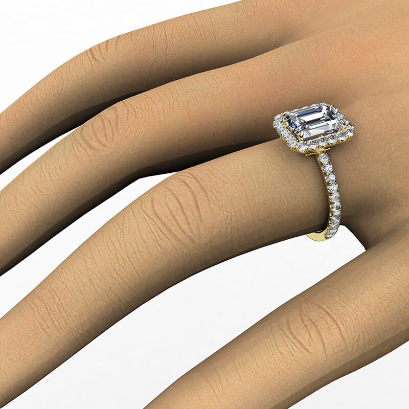 style Engagement Ring, center is Emerald shape Diamond Report by IGI, D Color & VS1 clarity, Made in 14k Yellow Gold (2 ct. tw.)