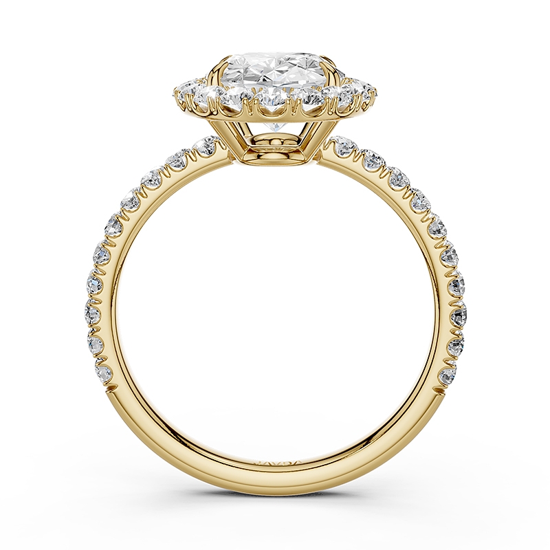 French U Split Pave Halo Diamond Engagement Ring Setting 18k Yellow Gold 1Ct.