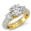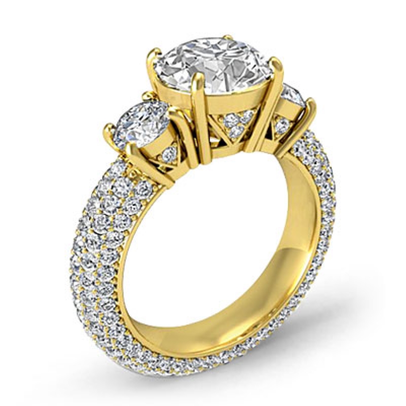 Micro Pave Set Three Stone style Engagement Ring, center is Round shape Diamond Report by IGI, D Color & VS1 clarity, Made in 18k Yellow Gold (3.68 ct. tw.)