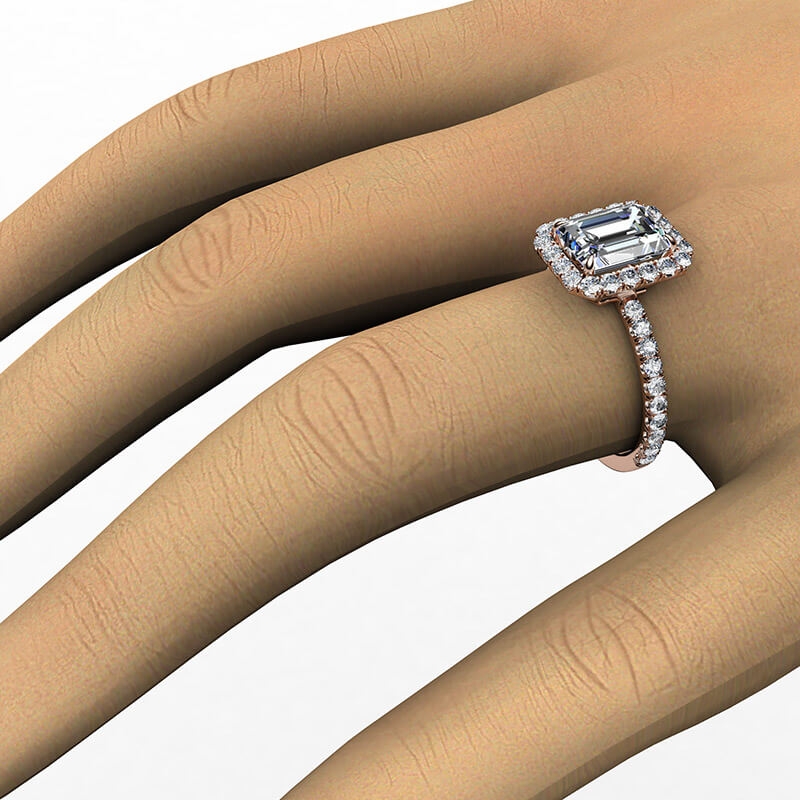style Engagement Ring, center is Emerald shape Diamond Report by IGI, D Color & VS1 clarity, Made in 14k Rose Gold (2 ct. tw.)