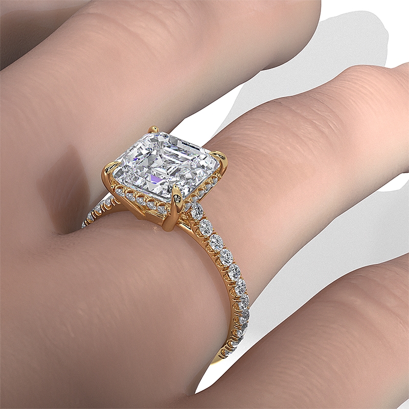 style Engagement Ring, center is Asscher shape Diamond Report by IGI, D Color & VS1 clarity, Made in 14k Yellow Gold (1.6 ct. tw.)