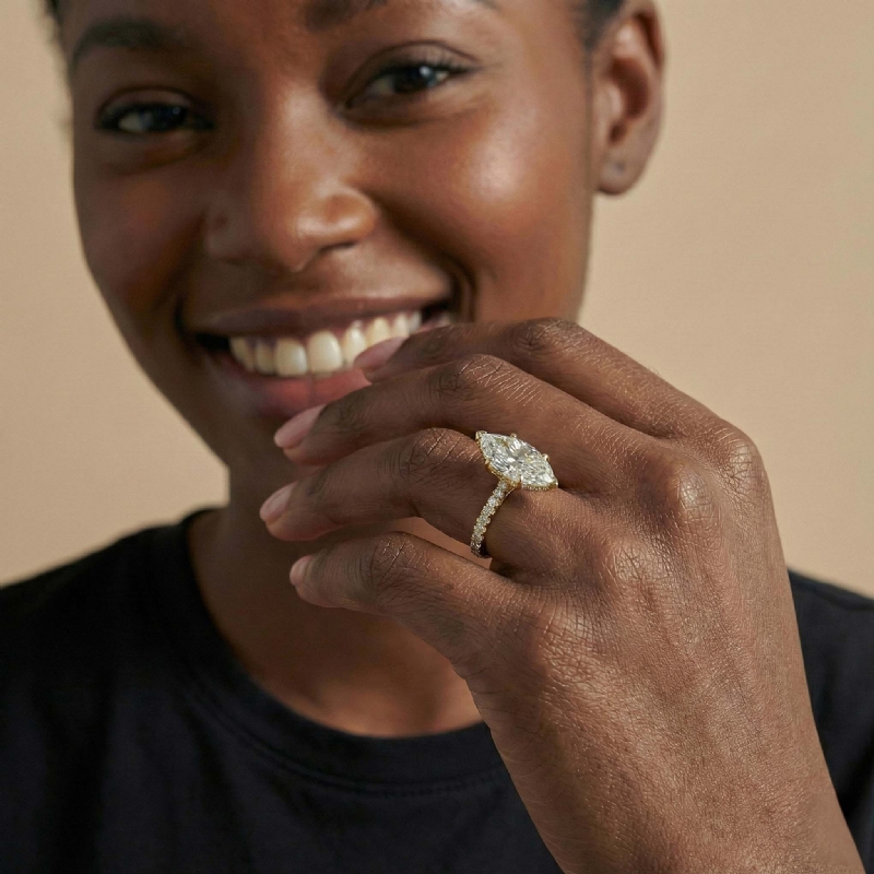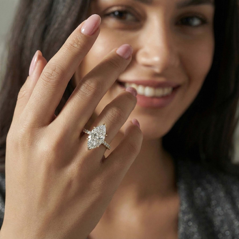 style Engagement Ring, center is Marquise shape Diamond Report by IGI, D Color & VS1 clarity, Made in 14k Yellow Gold (1.56 ct. tw.)