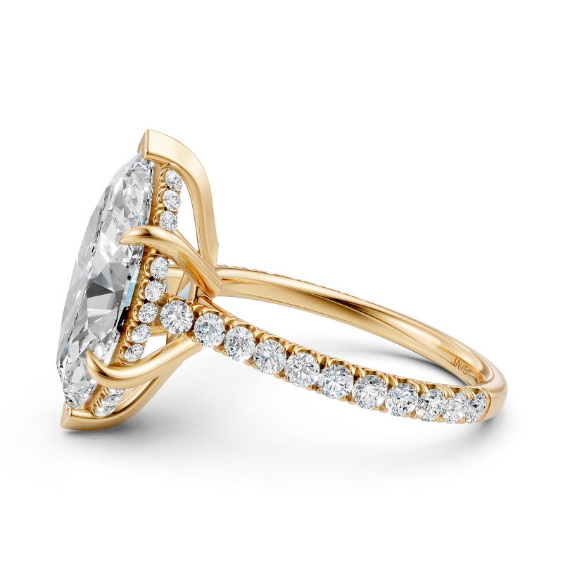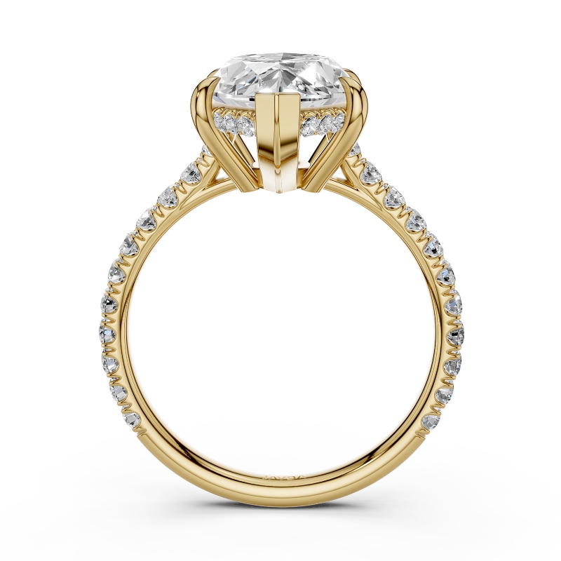 French U Hidden Halo Diamond Oval Semi Mount Engagement Ring 14k Yellow Gold 0.52Ct.