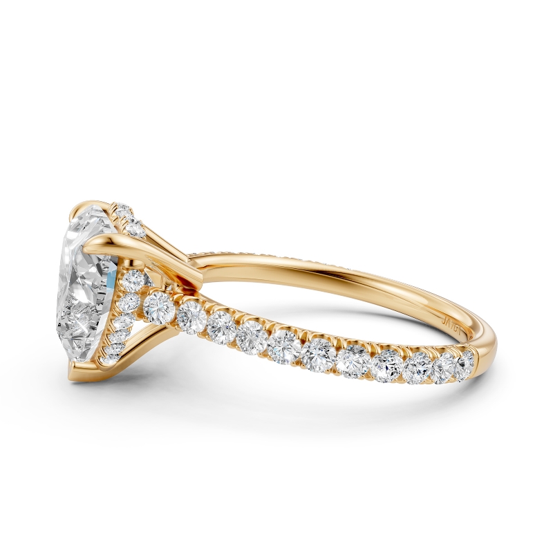 French U Hidden Halo Diamond Oval Semi Mount Engagement Ring 18k Yellow Gold 0.52Ct.
