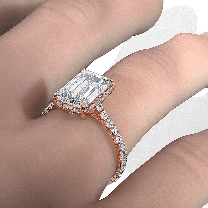 style Engagement Ring, center is Emerald shape Diamond Report by IGI, D Color & VS1 clarity, Made in 14k Rose Gold (1.52 ct. tw.)