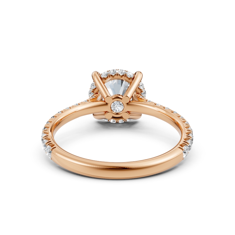 French U Hidden Halo Diamond Oval Semi Mount Engagement Ring 18k Rose Gold 0.52Ct - javda.com