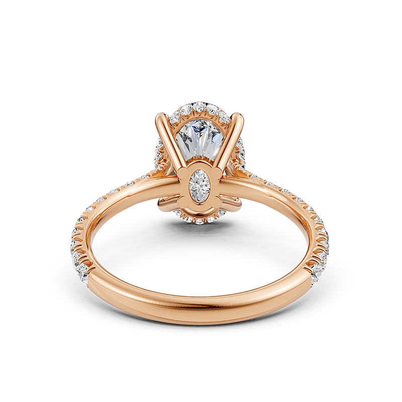 French U Hidden Halo Diamond Oval Semi Mount Engagement Ring 18k Rose Gold 0.52Ct.