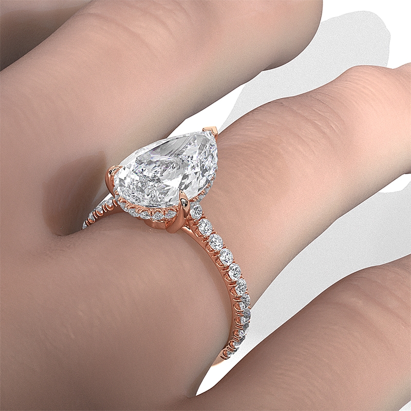 style Engagement Ring, center is Pear shape Diamond Report by IGI, E Color & VS1 clarity, Made in 18k Rose Gold (1.74 ct. tw.)
