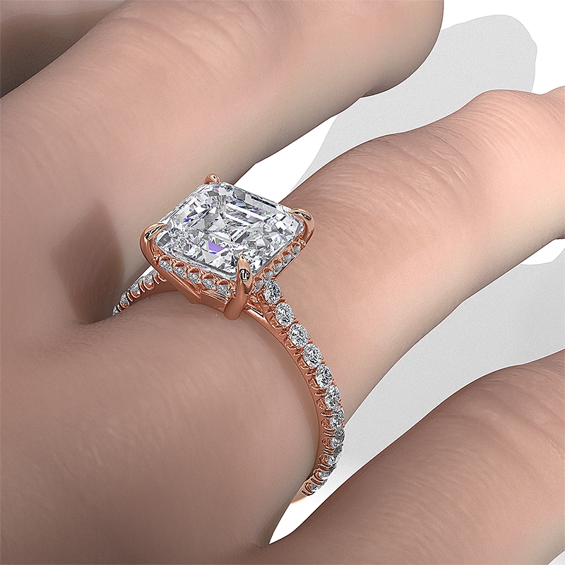 style Engagement Ring, center is Asscher shape Diamond Report by IGI, D Color & VS1 clarity, Made in 18k Rose Gold (1.6 ct. tw.)