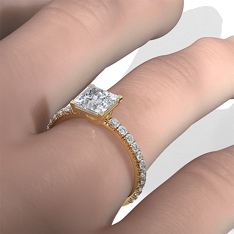 style Engagement Ring, center is Princess shape Diamond Report by IGI, E Color & VS1 clarity, Made in 14k Yellow Gold (1.52 ct. tw.)