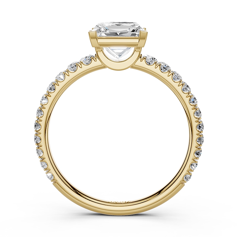 French U Pave Round Diamond Semi Mount Engagement Ring 14k Yellow Gold 0.5Ct.