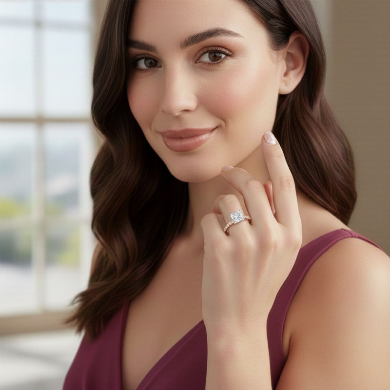 style Engagement Ring, center is Princess shape Diamond Report by GIA, D Color & VS1 clarity, Made in 14k Rose Gold (1.5 ct. tw.)