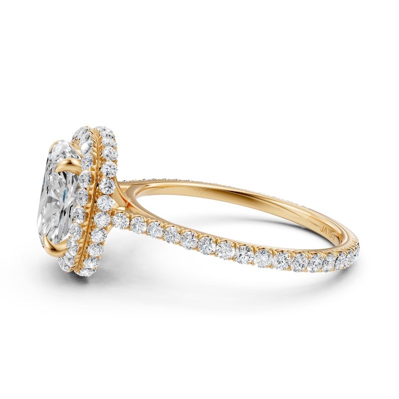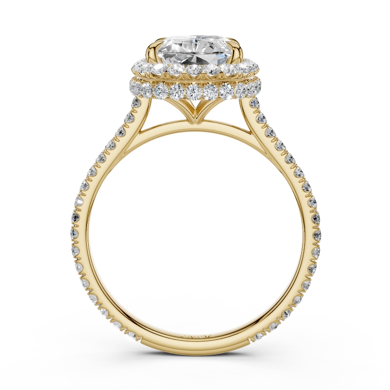 Double Halo Semi Mount Lab Grown Diamond Engagement Ring 14k Yellow Gold 0.53Ct.