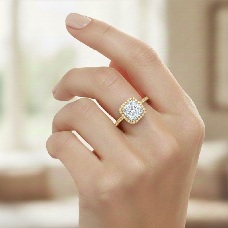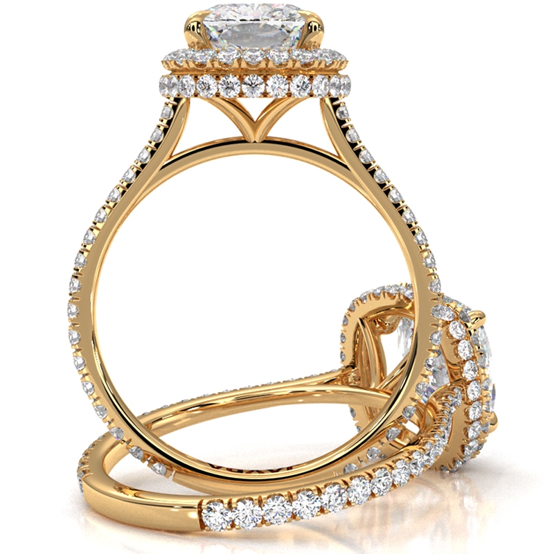 style Engagement Ring, center is Cushion shape Diamond Report by IGI, D Color & VS1 clarity, Made in 14k Yellow Gold (1.54 ct. tw.)