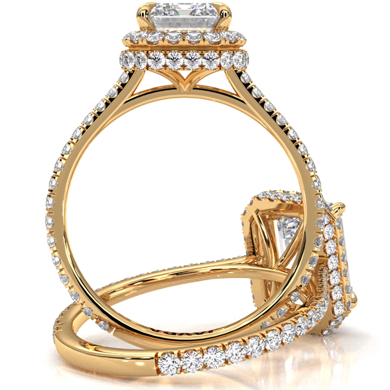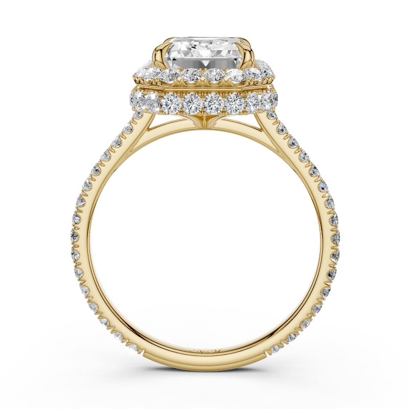 Double Halo Semi Mount Lab Grown Diamond Engagement Ring 14k Yellow Gold 0.53Ct.